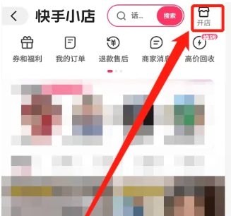 3、接下来跳转到快手商店界面,点击右上角的【打开商店】图标;
