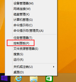 1、右键单击win8系统左下角的开始菜单图标,然后选择“控制面板”进入。