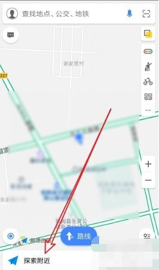 1、首先打开高德地图APP,进入主界面,点击左下角的【探索附近】服务;
