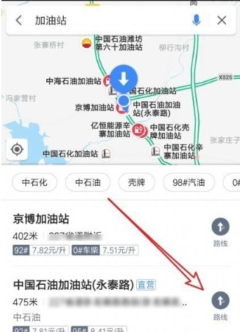 4.最后找到最近的加油站,点击右侧【路线】即可到达。