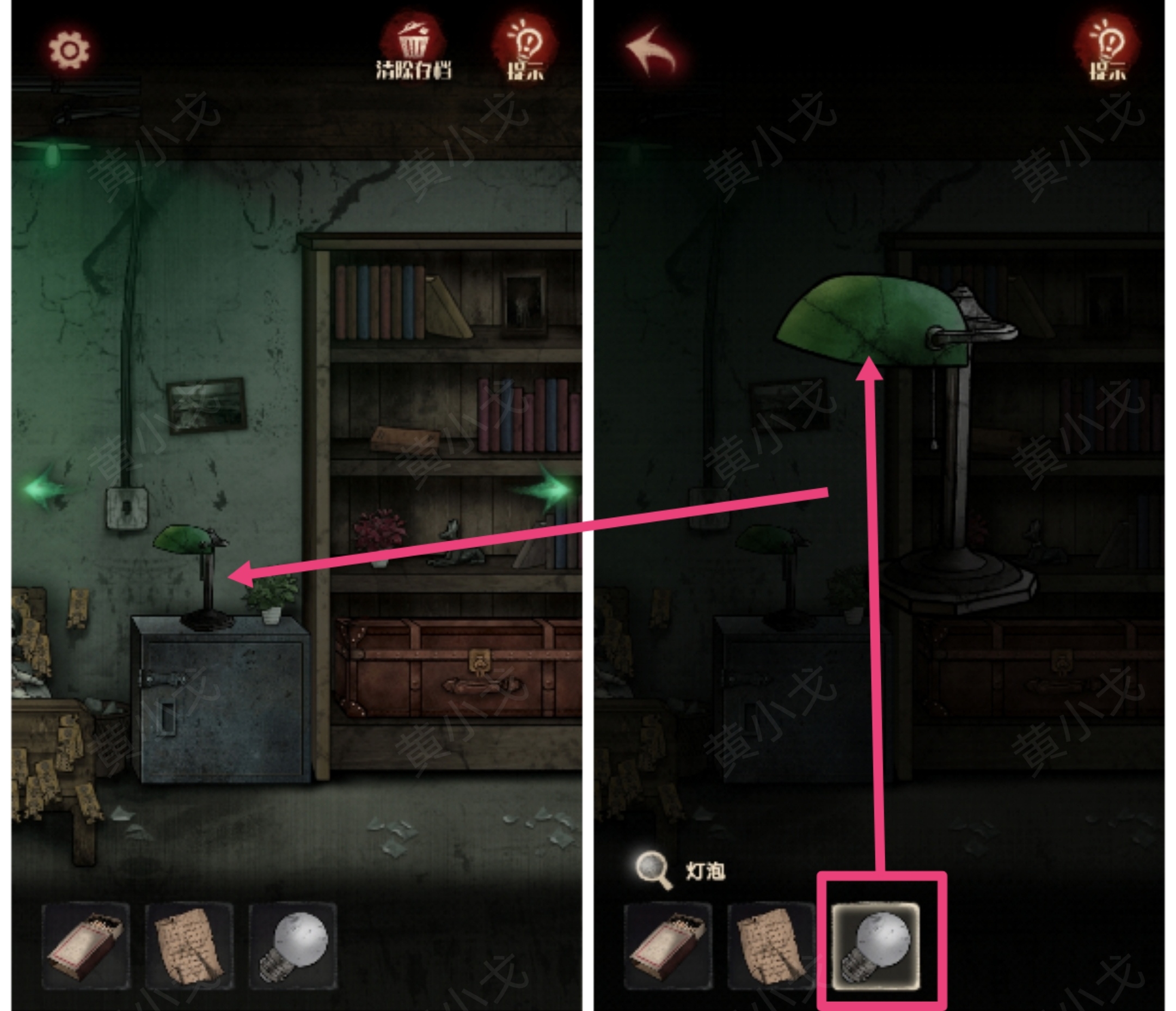 7.打开台灯,得到【血红钥匙】和【电池1】