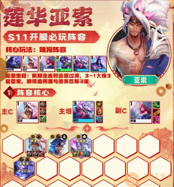 走位安排:前期亚索和锤石分担前排压力,也可以和阿狸搭档提升魔力和防御;后期亚索和塞特配合吸收伤害输出,阿狸、辛德拉和亚索站在同一边帮助清前排。