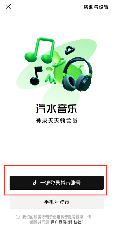1、首先打开苏打音乐APP,进入主页面,找到下图,点击【一键登录抖音账号】;