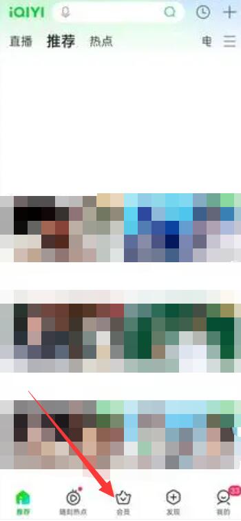 第一步:打开爱奇艺APP,进入主页面【会员】区域;