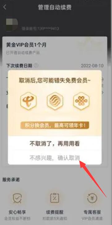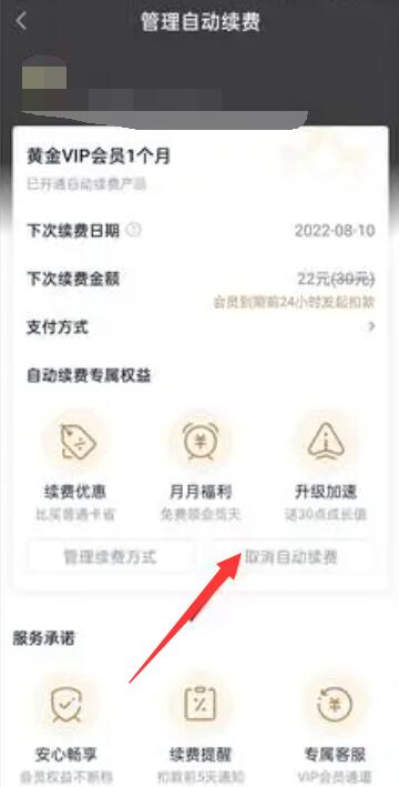 第四步:进入自动续费管理界面,找到【取消自动续费】边框并点击;