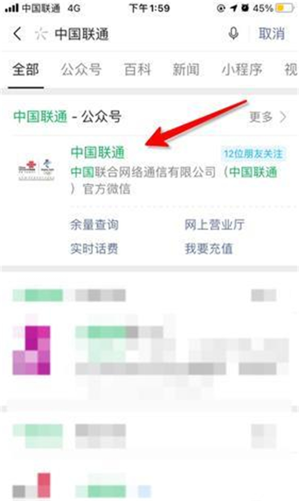 4.【公众号查询】:微信搜索【中国联动】,选择公众号中的【余额查询】。