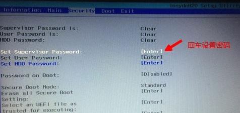 2. 如果Secure Boot 为灰色且无法设置,请进入Security,选择Set Supervisor Password 并按Enter 设置密码,然后返回到BOOT 选项,将Secure BOOT 从默认启用更改为禁用。 (注意:更改secure boot后,将密码设置为空。是的,否则每次进入BIOS都要设置)如下图;