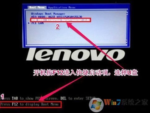 5、保存设置后自动重启进入LOGO画面,按住F12,选择U盘启动,如下图;
