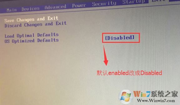 2. 进入Exit并将OS Optimized Defaults设置为Disabled;