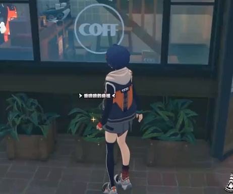 1.第一个纪念币是早上和咖啡店旁边的绿色植物对话后获得的。位置如下图所示。
