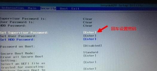 2. 关闭安全启动以禁用。当设置为“旧版”时,安全启动默认处于关闭状态。如果Secure Boot为灰色且无法设置,请进入Security,选择Set Supervisor Password并按Enter键设置密码,然后禁用Secure Boot,如图: