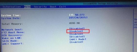 3、进入Main,选择F12 Boot Menu回车,设置为Enabled,按F10,选择Yes并回车保存更改,如图: