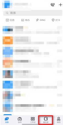 1.首先打开钉钉APP进入主页面,选择底部的【通讯录】功能进入专区;