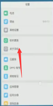 1、首先打开oppo手机中的设置功能,找到【关于手机】选项并点击;