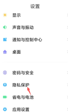 1、首先打开小米手机中的设置功能,选择【隐私保护】服务;