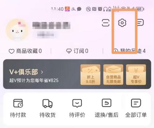 1.首先点击个人中心,然后点击右上角的设置按钮。