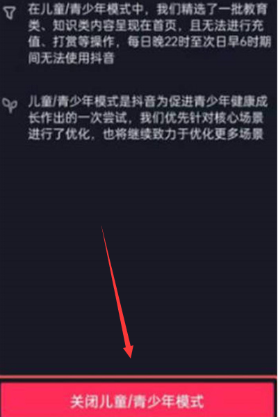 3、最后跳转到最新界面,去掉底部的【关闭儿童/青少年模式】边框。