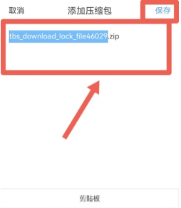 4、最后在下图所示页面输入压缩文件的名称,点击右上角【保存】。