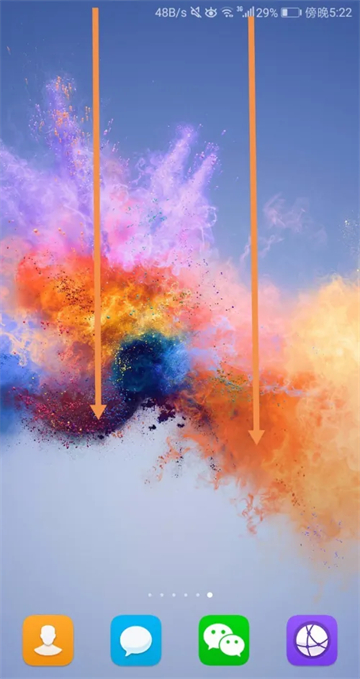 1. 在手机桌面上,下拉状态栏。