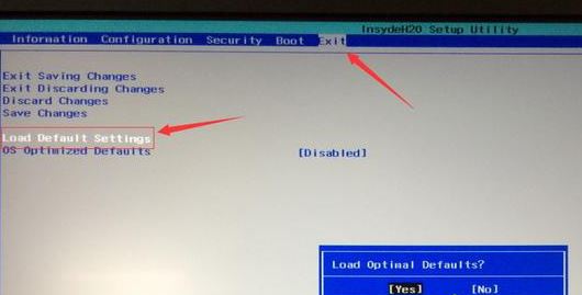 2、进入Exit,将OS Optimized Defaults设置为Disabled或Other OS,如图:
