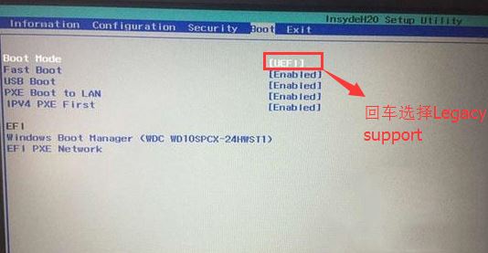 4、切换到Boot,将Boot Mode从UEFI改为Legacy Support,如图: