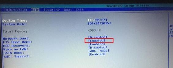 3、进入Main,选择F12 Boot Menu回车,设置为Enabled,按F10,选择Yes并回车保存更改,如下图;