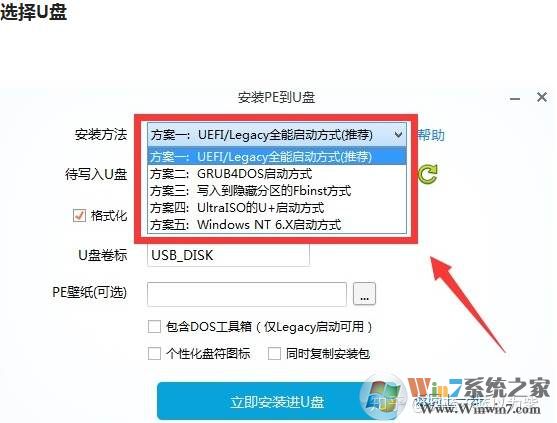 3. 选择生产计划。我们推荐一款支持UEFI 和传统模式启动方法的全能型产品。还要选择您的USB 驱动器。