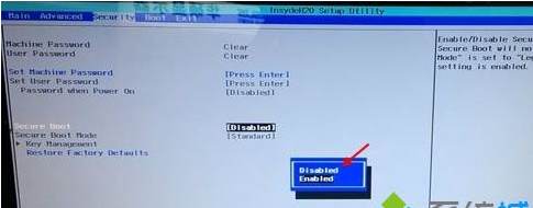 2. 切换到安全。如果有安全启动,请将其设置为禁用。如果没有,则进行下一步;