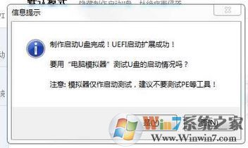 4.制作完成后,会提示我们是否测试。点击Yes,模拟启动PE系统;