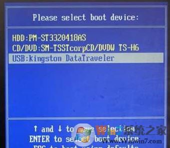 步骤:开始安装系统1.将U盘插入电脑,重新启动电脑并按住启动热键(但大体类似,较新的电脑会有启动快捷键(如F12 F11 F9 F2 ESC等)弹出启动项选择界面),选择USB开头进入U盘启动盘,如图: