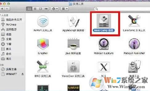 2、将win7原版操作系统iso文件下载到air电脑后(如果通过其他电脑下载,需要使用U盘复制到AIR电脑),在MACbook系统中,点击【前往】-【实用工具】 ] 在上面的菜单中,找到并打开“Boot Camp Assistant”: