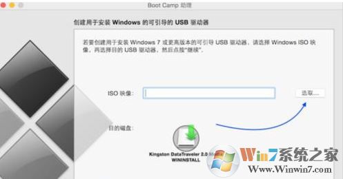 3、打开Boot Camp,然后勾选“创建Windows 7安装盘”,点击继续;