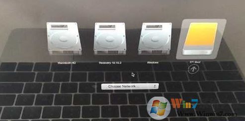 7、如果重启后没有反应,请重新启动。重启时按住Option键,等待出现磁盘选择启动,选择USB启动盘开始安装!