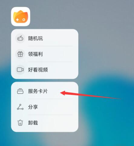 答:长按图标,选择服务卡,然后将游戏添加到桌面。