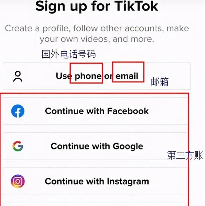 2. 选择您的手机或邮箱、facebook、google,按照提示注册账户。
