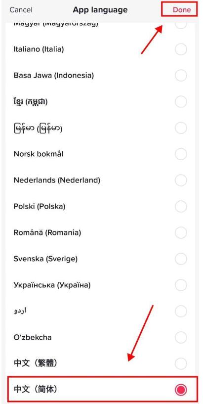 4.找到简体中文,点击右上角完成。