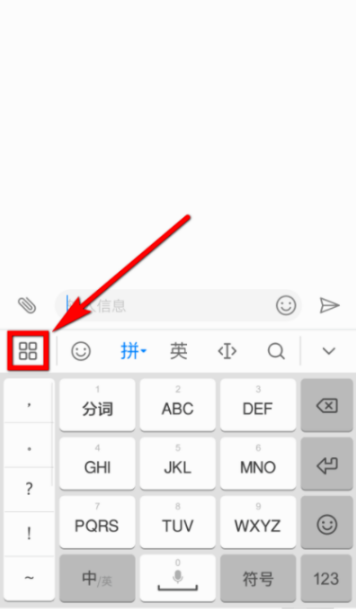 1、首先打开讯飞输入法键盘,点击下图箭头所示按钮;