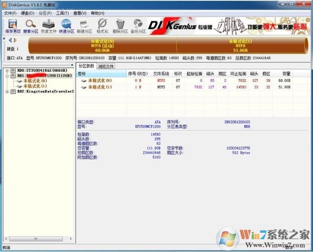 3. 可以重复以上操作来分离多个分区。比如我划分了2个区域,就已经划分好了。接下来,单击左上角的保存更改。在弹出的询问是否格式化的窗口中,选择“是”。分区完成,4K对齐完成winwin7.com