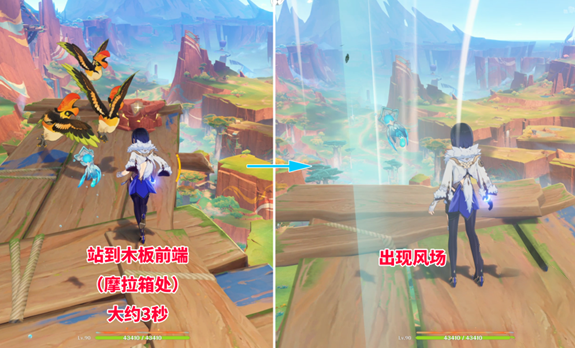 1、风场的触发点在山顶。当你到达山顶时,你会看到一块木板突出。