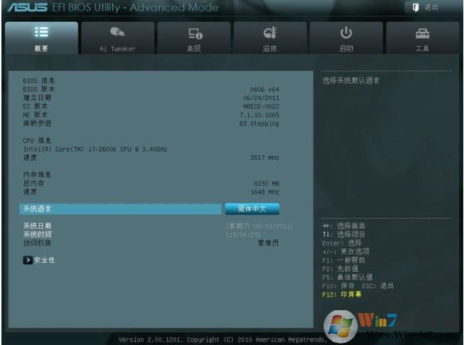华硕主板现采用新一代EFI显卡华BIOS,设置更直观、更简单!当然,很多用户还不太了解一些高级设置。下面小编将为大家介绍华硕BIOS各方面的设置说明,包括大家经常需要设置的USB启动。我们来详细看看下面的设置图。