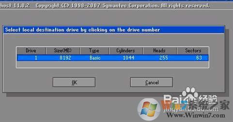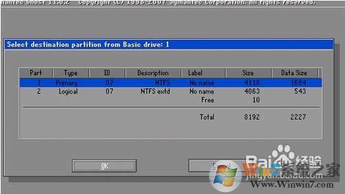 4.下一步是选择要安装系统的分区。一般C盘是1分区,仔细辨认即可。选择后,按“确定”按钮继续下一步: