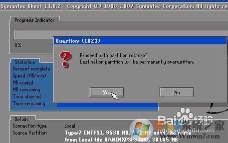 7. 然后会弹出确认对话框询问是否要恢复到该分区。选择“是”: