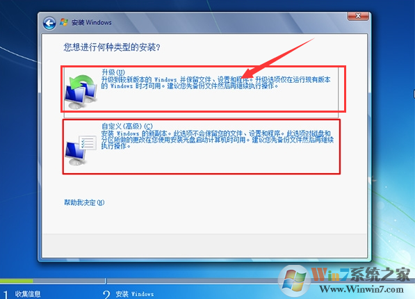 3、选择执行什么类型的安装时,我们选择“升级”进行覆盖安装;
