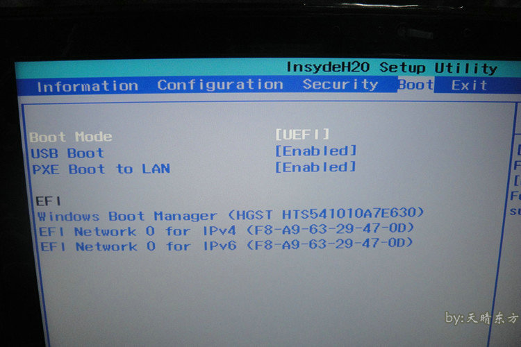5.BIOS在这里被改变了。先关闭电脑,然后找一个回形针,戳一下左侧耳机插孔旁边的小眼睛。将出现四个英文选项。选择第三个,启动菜单,然后按Enter。