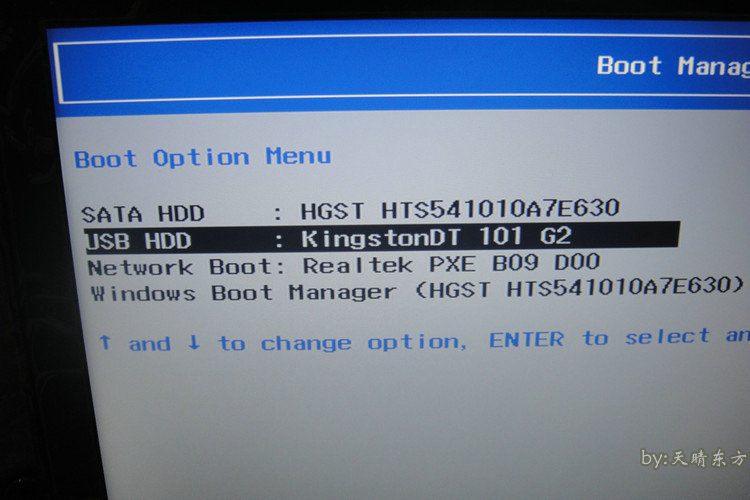 6、在出现的选择中,选择您的系统U盘选项,然后按Enter键启动到U盘。