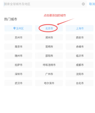5.最后选择城市后就可以添加查看天气了。