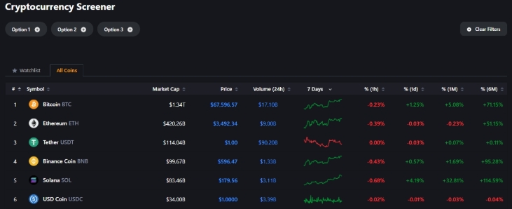 解决方案:利用平台提供的过滤排序功能,根据市值、交易量、增减等指标进行过滤。