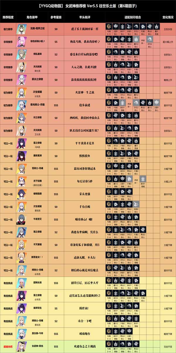 崩坏3每个版本更新后,女武神的强度都会有一些稍微的调整,只有最适合版本的女武神才能在战斗中有更好的表现,大家想要知道最新的武神强度排行的话,就来看看小编为大家整理的表格吧!