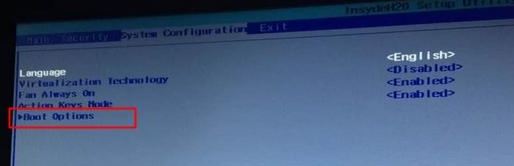2、键盘右键移至System Configuration,选择Boot Options,回车进入设置;
