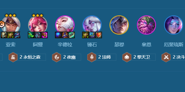 2.第二阶段没有升级。3-1开始寻牌,重点寻找3星亚索阿里达留斯,约里克可以抓到2星。